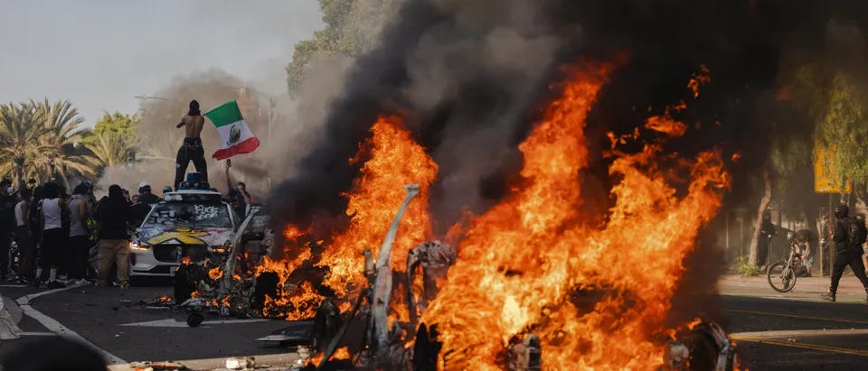The riots in California are not a civil war, this is an insurrection of a foreign power against a sitting government. That the “foreign” power are the citizens of a foreign state, part of a cartel, or the vanguard of a communist putsch, it’s a national crisis. There is a difference between a state like Texas ignoring the commands of Washington DC to violate the law and following the law in spite of their commands and that taking place in California. There, the state is violating the law and refusing to enforce the law as Washington DC commands. The communists love the confusion, foment it, encourage it, that’s the sweet spot for a communist, chaos and confusion.